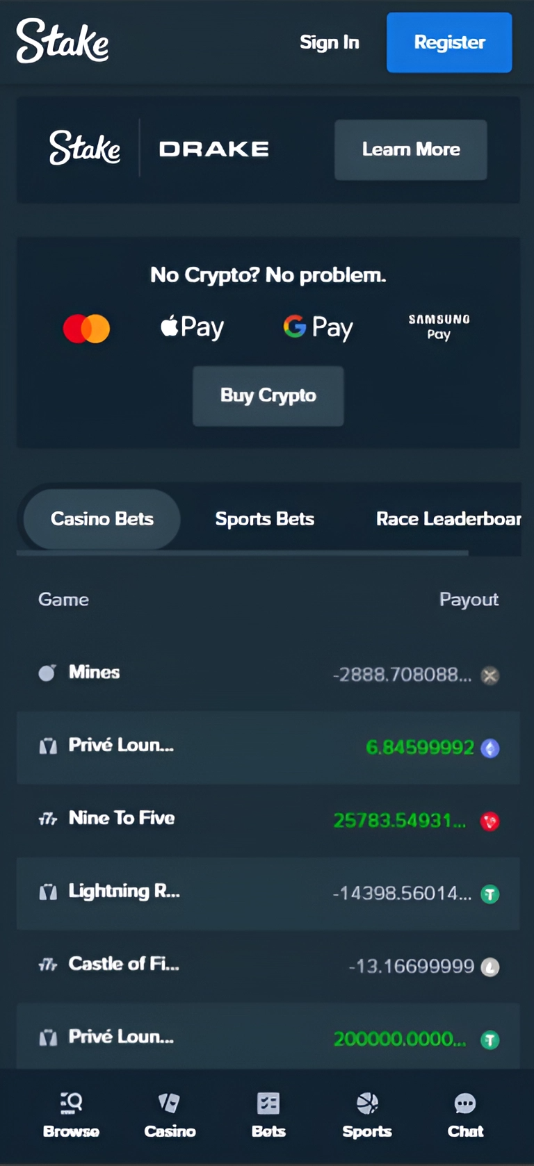 Mobile Stake casino games